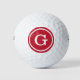 Simple Red White Monogram with Circle Border Golf Balls