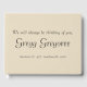 This mourn funeral/memorial condolences guestbook features the message "We will always be thinking of you,", and the custom name and birth/death dates of the individual who has passed on. The text is coloured black, and the background is coloured beige. It could be used to record fond memories of somebody who has recently passed away.