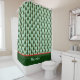This charming shower curtain features a delightful holiday motif that instantly brings the festive spirit to your bathroom decor. Vibrant triangular Christmas trees, adorned with round red ornaments, dance merrily across a soothing pale green backdrop. At the curtain's bottom, a tastefully designed green colour block with a striking red border awaits your personal touch – whether it's embellished with a name, a cherished holiday phrase, or left elegantly blank, this shower curtain adds a touch of seasonal magic to your daily routine. It's the perfect way to infuse your bathroom with the warmth and joy of the holiday season.