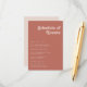 This simple retro vibes | old rose schedule of events enclosure card is perfect for your classic funky vintage earth tones wedding. The design features a minimalist hippie rustic boho font. The neutral southwest desert colour palette and earthy bohemian mid-century lettering combine for a perfect, minimal modern western destination design. Feel free to change the colour add your own artwork, graphics, or photos. If you have any questions about the design of this product, please feel free to reach out to us!