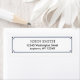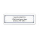 A simple, customizable return address label on a white background with a black and blue mansard border.
