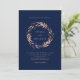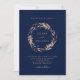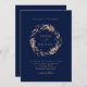 Simple Rose Gold Foliage Navy Blue Wedding Invitation