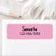 Ces étiquettes rose pâle ont deux lignes de texte noir. La ligne supérieure est destinée à un nom. La ligne inférieure est destinée à un numéro de téléphone. Tout le texte peut être modifié ou supprimé. Ces étiquettes de numéro de téléphone sont parfaites pour étiqueter les affaires de votre enfant pour l'école.