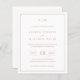 Simple budget wedding invitation featuring a modern yet elegant design with your two letter monogram at the top, a bold date layout and your details surrounded by a thin border. All design elements are in faux rose gold pink over a white background and may be changed in the design editing tool. A chic and stylish design that is great for a minimalist couple.