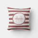 A simple rosy brown and white bengal stripes square throw pillow. Personalize this casual pattern by adding your name and monogrammed initial. This dressy monogram design is part of the Marsala Stripes Bedroom Decor Summer Colour Collection.