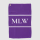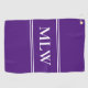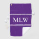 Three white letters are in the centre. You can change the letters to display the correct monogram. Two white horizontal lines are above and below the initials. The background is royal purple.