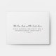 Simple white RSVP envelopes with a return address already printed in black on the envelope, in elegant script and all caps serif.