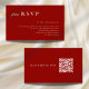 Simple Ruby Red Bone White QR Code Wedding RSVP Enclosure Card