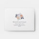 This simple rustic floral self-addressed RSVP envelope is perfect for your elegant vintage spring wedding. It is designed with classic rose flowers, simplistic blush peonies, and dusty purple hydrangeas. All of which is accompanied by touches of green eucalyptus and navy leaves. With all of these light colourful watercolor flowers, you are sure to get the feel you desire.