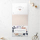 This simple rustic floral wedding all in one tri-fold is perfect for your elegant vintage spring wedding. It is designed with classic rose flowers, simplistic blush peonies, and dusty purple hydrangeas. All of which is accompanied by touches of green eucalyptus and navy leaves. With all of these light colourful watercolor flowers, you are sure to get the feel you desire.