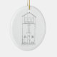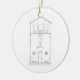 New Home Ink Drawing Black and White New Home First Christmas Double-Sided Round Ceramic Ornament. Keep drawing of house on front or upload your own image. All text on back can be customized. This image is from my original ink on mylar hand drawing of a small rustic cottage with charming architectural details and small stone benches each side of door.