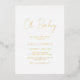 Modern gold foil baby shower invitation featuring a simple design with "Oh Baby" in a rustic style script typography. This elegant gender neutral invitation with a minimalist layout is great whether you are having a boy or a girl.
