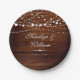 Simple Rustic Wood and String Lights Wedding Paper Plate