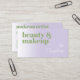 Beautiful elegant minimalist style artistic makeup artist business card. Contemporary light lavender lilac violet coloured business card with a modern retro and minimalist sage green and sophisticated classy white font. Click on 'Personalize' to find the template ready to be customized with your unique business name, profession and contact information, text and QR code of your choice. This particular pretty and unique design was made for those who like sophisticated classic strong designs.