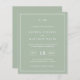 Simple budget wedding invitation featuring a modern yet elegant design with your two letter monogram at the top, a bold date layout and your details surrounded by a thin border. All design elements are in white over a sage green background and may be changed in the design editing tool. A chic and stylish design that is great for a minimalist couple.