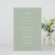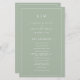 Simple Wedding Program featuring a modern yet elegant design with your two letter monogram at the top and your details surrounded by a thin border. All text is in white over a sage green background and may be changed in the design editing tool. The front has your order of ceremony and the back has your wedding party and thank you message. A chic and stylish design that is great for a minimalist couple. These cheap wedding programs are printed on sheets of paper for a budget friendly option.