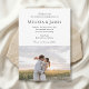 Introducing a uniquely personalized wedding invitation that perfectly marries elegance with cherished memories. The top half of this exquisite invite showcases your wedding details in a stunning combination of elegant script for the introductory and reception information, and timeless serif font for the remaining text, creating an air of sophistication and grace. Below, the invitation becomes truly yours with the addition of your chosen photo, adding a personal touch that will captivate and delight your guests. This invitation is not just an announcement, but a beautiful keepsake, reflecting the special bond you share.