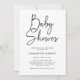Simple Script Baby Shower Invitation. This modern minimalist hand-lettered script baby shower invitation is perfect for couples who want to make a contemporary style statement. The elegant calligraphy combined with the black and white colour palette will create a timeless invitation your guests won't forget. Make a bold statement with this unique and stylish design!
