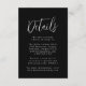 Modern wedding details cards featuring your wedding details displayed in white lettering with a black background. Add details such as hotel accommodations, welcome reception information, wedding website, etc. Designed to coordinate with our Simple Script wedding collection.