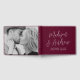Add a personalized touch to your wedding ceremony with this Simple Script Burgundy guest book. The design features your names displayed in an elegant white calligraphy script with your wedding date and location shown below on a burgundy background. Add your custom text to the spine of the burgundy guest book. The back of the guest book features your horizontal engagement photo.