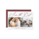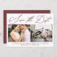 Simple burgundy "save the date" calligraphy script with two photos and a burgundy red back, modern and minimal save the date card.
