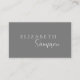 This modern elegant business card features elegant text with a grey and white text theme. All text on the front and back can be customized.