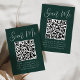 Simple Script Forest Green QR Code Wedding RSVP Enclosure Card