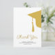 Modern trendy script faux gold and white simple minimalist graduation thank you card template featuring a graduation cap with tassels. ++++++++++ Easy to personalize with your details and custom text!