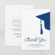 Modern trendy script navy blue and white simple minimalist graduation thank you card template featuring a graduation cap with tassels. ++++++++++ Easy to personalize with your details and custom text!