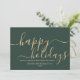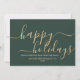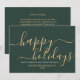 Simple minimalist green business holiday card with an elegant modern script reading "Happy Holidays" in a beautiful gold colour. This card is fully customizable. You may change any message with the one of your choice.