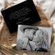 Modern wedding thank you card featuring your horizontal wedding photo with "Love & Thanks" displayed in a simple white script overlay. Personalize the photo thank you card with your name. The card reverses to a solid black background with space for additional photos and text.