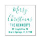 Merry Christmas rubber stamp personalized with family name and return address.