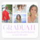 Simple Script Multi Photo Grad Graduation Party Stickers & Labels features four of your favourite photos of your college or high school graduate with the elegant modern purple calligraphy script "Graduate" overlay. Personalize with name, class of and school or college. Simple, stylish and classy. Created by ©Evco Studio www.zazzle.com/store/evcostudio