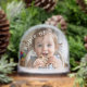 Capture the magic of the season with this personalized snow globe featuring a modern simple script Name, an arched phrase "Apple of our eye" and 2 Photos. This is a timeless keepsake that brings your favourite memories to life.