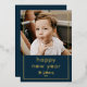 Simple Script Name Minimal Photo New Year Gold Foil Holiday Card. Click the edit button to add your photo and details.