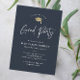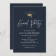 Simple Script Navy Blue Graduation Party invitation with elegant gold foil cap and minimalist typography. Click the edit button to customize this design. Easily add a photo to the back.