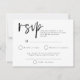 Simple Script QR Code Wedding Response. Set typography in black for the main heading RSVP complementing the rest of the text which you can easily personalise. With your QR code on the back as an alternative for your guests to reply online if they so wish.