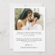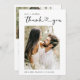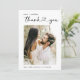 Express your gratitude with our Simple Elegant Script Text and Photo Wedding Thank You Card! Featuring a clean, minimalist design, this card showcases your favourite wedding photo alongside a heartfelt message of thanks. The elegant typography adds a touch of sophistication, making it the perfect way to show appreciation to your guests for celebrating your special day. Personalize it with your names and a custom message to make it uniquely yours. Ideal for newlyweds seeking a timeless and stylish way to say "thank you," this card will leave a lasting impression on your loved ones!