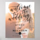 "Welcome to the wedding" typography wedding sign. Personalize with photo, names, date and hashtag.