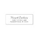 Simple, modern wedding return address self-inking stamp, featuring your names in black script font and your address in sans serif font.