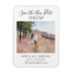 Simple Script Save the New Date Photo wedding Magnet. Family and friends find out you had to put off your wedding events with this stylish minimalist deferral announcement Magnet.