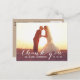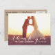 Simple Handwritten Script Overlay Photo Wedding Thank You Postcards. Design by Elke Clarke© for MonogramGallery printed by Zazzle. Send out your wedding thank you message as newly weds to your friends and family using this beautifully, simple thank you wedding photo postcard with the words "thank you" written in a white handwriting typography script text overlay. Replace the sample photo with your own. Add your personal thank you message on the back or leave blank and hand write your message in person. Beige kraft paper background printed photo effect on back of card. Other colours available.