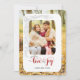A lovely off-white overlay with your photo filing the card and then framed in the centre by pine branches and a simple message of love and joy for the holiday season. NOTE: You'll want a photo that DOES NOT have tight cropping of the couple or family.