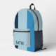 Simple Shades of Blue Vertical Stripes Monogram Printed Backpack