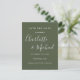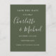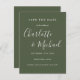 Featuring signature style names, this elegant olive green save the date card can be personalized with your special event information in modern white lettering. Designed by Thisisnotme©