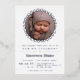 Silver foil and white naming ceremony invitation with a photo of your baby inside a simple silver wreath. Photo naming ceremony invitation in silver and white with a charming leafy wreath.