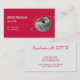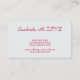 Vibrant bright red colour background, calligraphy writing and silver yarn's pattern; a minimalist design for unique and cute professional business card. Creative for your personal branding as artisan or artist.