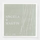These modern minimalist wedding standard dinner napkins feature the names of the bride and groom with a flowing line design in dusty sage.