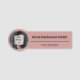 The Simple Soft Pink Profile Image Expertise Name Tag to elevate your salon's professional appearance. It is part of the exclusive "Black Pink Hair Stylist Business Cards & Suite" collection. This sleek white photo name tag template features ample space to prominently display your round profile image, the employee's name, and their expertise. Whether it's hairstyling, colouring, or spa treatments, this customizable name tag will effortlessly complement your salon's branding.