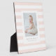 This simple design features white rugby stripes and a framed photograph with custom name and birth details.